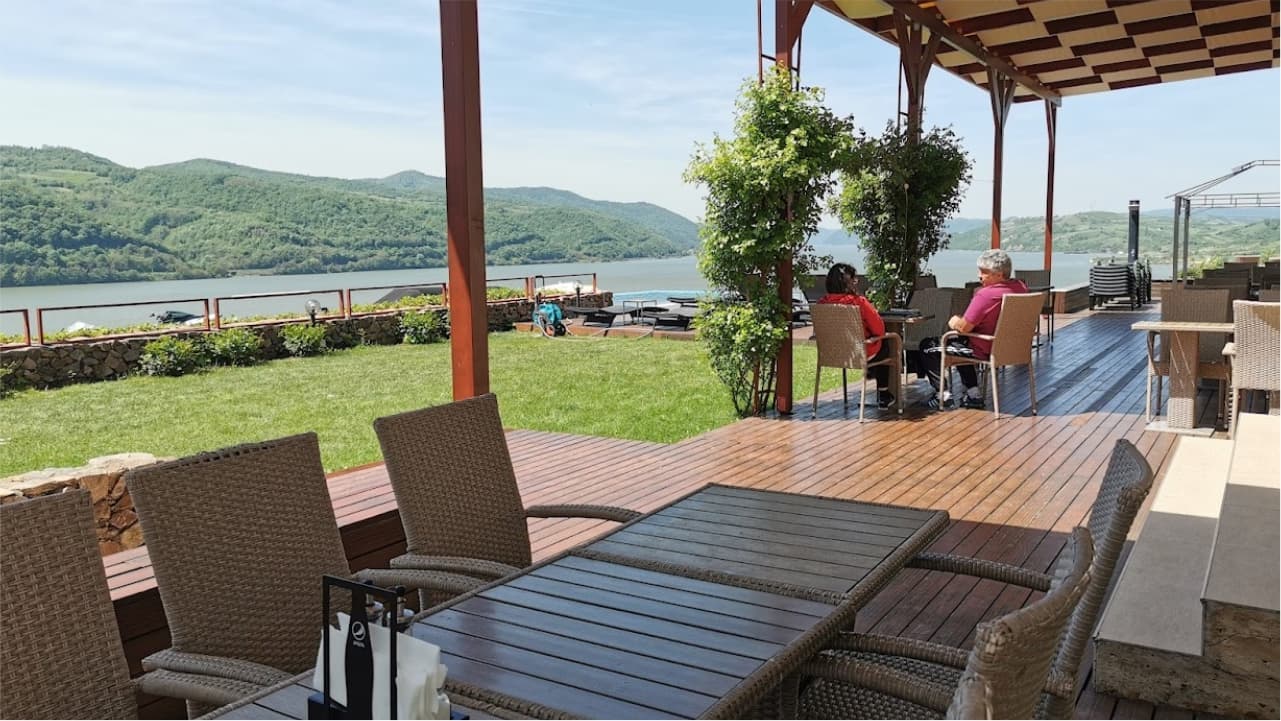 Un restaurant cu terasă deschis tot anul, foarte căutat mai ales în sezon, datorită panoramei foarte frumoase asupra defileului Dunării; atunci, timpii de aşteptare pentru eliberarea unei mese şi pentru servire pot fi mari. Axat pe bucătăria românească şi mediteraneeană, meniul este cuprinzător. Specialitatea casei este ciorba de peşte. Sunt servite toate mesele zilei, au prioritate clienţii cazaţi în pensiune. Bar | Mâncare la pachet/Take-out | Parcare pentru clienţi | Plata cu card de credit | Rezervare mese | Servire la masă | Terasă exterioară | Wi-Fi