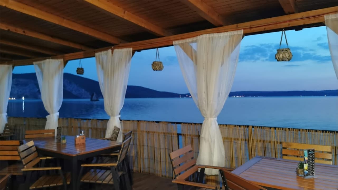 Deschis tot anul, restaurantul este axat pe preparate din bucătăria românească şi mai ales pe bază de peşte, care este pescuit din Dunăre de către proprietar. Specialităţile casei sunt file-ul de caras, preparat pane după o reţetă proprie şi peştele afumat (crap şi somn). Terasa amplasată pe malul Dunării se bucură de un frumos view către stânca Baba Caia şi mai ales în sezonul cald, timpii de aşteptare pentru a mânca pot fi mari, de până la 2 ore. Bar | Mâncare la pachet/Take-out | Parcare pentru clienţi | Plata cu card de credit | Rezervare mese | Servire la masă | Terasă exterioară | Wi-Fi